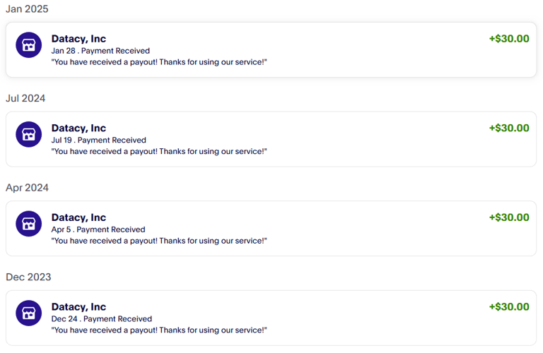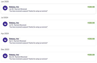 Datacy is a PC browser extension that pays me to collect my data. The data is mainly focused on shopping habits. Recently I was not apart of any earning group and was earning around $0.80 a week. Im not sure what the criteria really is but they are somewhat transparent about the groups. Last year I was lucky and was in a group that paid out $4 a week for a few months. I did not purchase anything from that category.