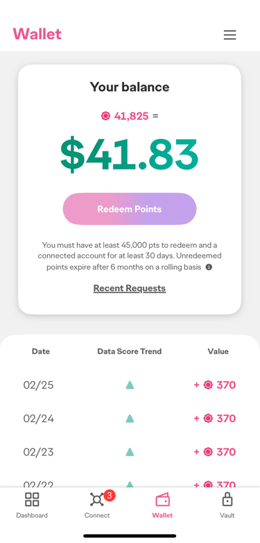 $45 withdraw min. Bonuses for linking data connections for the first time make the first cashout quicker.